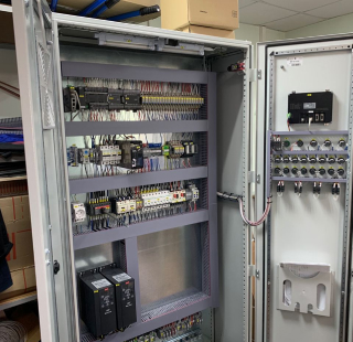 В наши работы входила разработка конструкторской документации, закупка и выбор комплектующих, сборка шкафа управления, программирование контроллера, программирование панели, оператора и пусконаладочные работы.